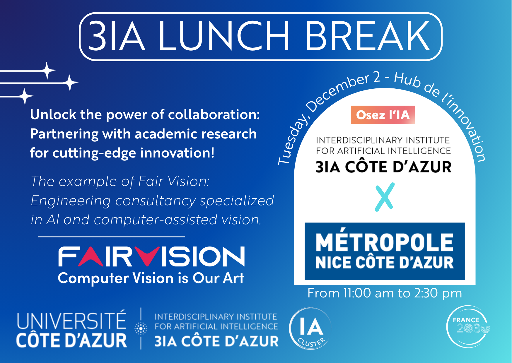August 1, 2025The 3IA Côte d'Azur Institute, a key regional AI actor in France, is proud to be part of the network of AI Ambassadors under the national “Osez l’IA” (“Dare AI”) plan. -