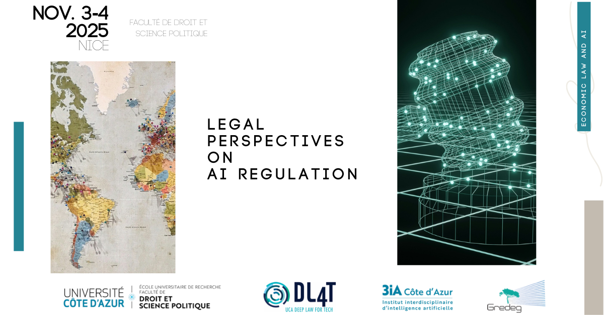 October 7, 2025On November 3 and 4, 2025, the 3IA Côte d'Azur Chair "Economic Law and AI" invites you to an event sponsored by Professor Karim Benyekhlef, Faculty of Law at the University of Montreal and Director of the Cyberjustice Laboratory. -